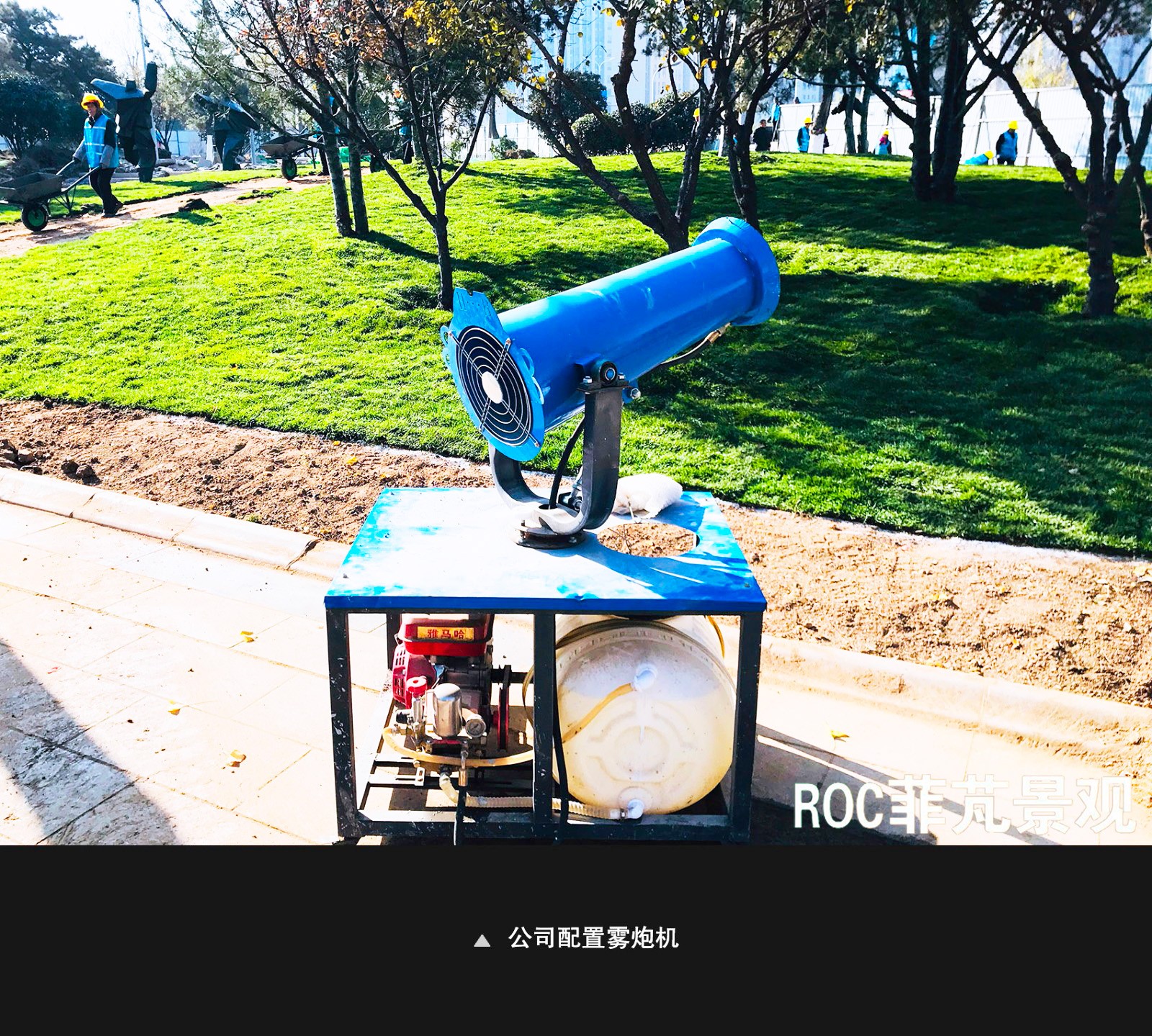 為了小清河板橋廣場景觀園林改造提升工程更好的呈現(xiàn)于大眾面前,我公司配置了新型材料。為了響應(yīng)國家環(huán)保政策,我公司配置霧炮機,霧炮機使用的是自主研發(fā)的噴嘴,水霧均勻噴灑,不會造成工地地面大量積水,尤其是避免冬季造成大面積結(jié)冰,影響作業(yè)面,同時也不會形成環(huán)境二次污染。不僅可以除塵降塵,還可以改善工地施工環(huán)境。