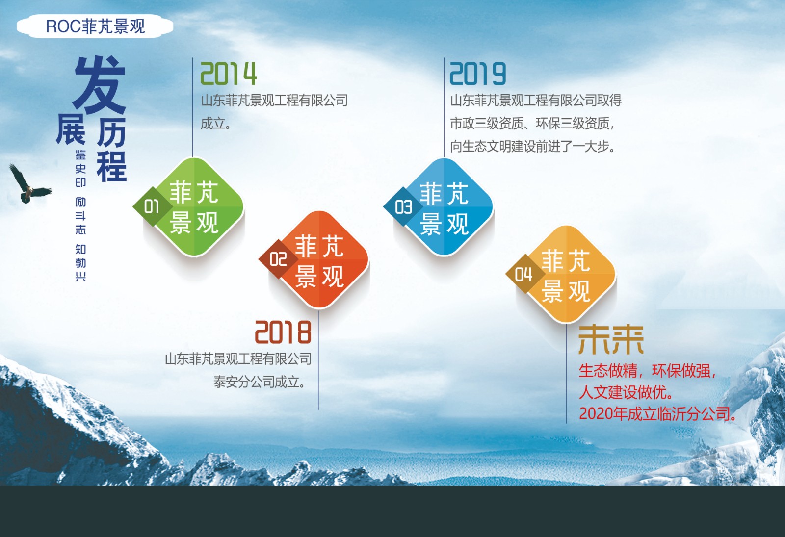 山東菲芃景觀工程有限公司坐落于擁有“七十二名泉”,被稱為“泉城”,素有“四面荷花三面柳,一城山色半城湖”之美譽(yù)的山東省濟(jì)南市,位于高新區(qū)銀荷大廈,創(chuàng)立于2014年。公司業(yè)務(wù)主營景觀設(shè)計(jì)、園林工程建設(shè)、綠化養(yǎng)護(hù)、市政工程、環(huán)保工程,為客戶提供專業(yè)的一體化解決方案。