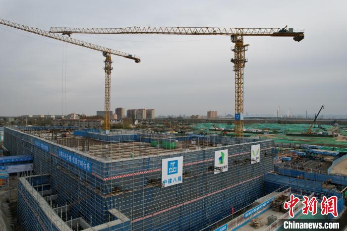 “落子”于中央風(fēng)貌綠軸上的鵲山生態(tài)文化區(qū)博覽園,是展示起步區(qū)生態(tài)文化特色的重要窗口,規(guī)劃面積1.2平方公里。記者在現(xiàn)場(chǎng)看到,園區(qū)按照“一軸一塔三館三區(qū)”的空間結(jié)構(gòu)進(jìn)行布局,被劃分成不同的功能區(qū)開(kāi)發(fā)建設(shè)。其中,東北部的鵲華中和苑被兩臺(tái)塔吊環(huán)抱,搖臂揮舞間,約15米高的兩層主體結(jié)構(gòu)已現(xiàn)雛形。