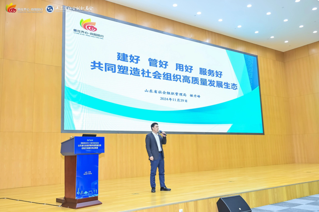 11月29日,以“創(chuàng)新協(xié)同共享 服務(wù)強(qiáng)省建設(shè)”為主題的2024山東省社會組織服務(wù)高質(zhì)量發(fā)展經(jīng)驗交流暨優(yōu)秀成果展在濟(jì)南成功舉辦。民政部社會組織管理局副局長馬俊達(dá),山東省民政廳黨組成員、副廳長張孟強(qiáng),中國社會組織促進(jìn)會副會長兼秘書長楊岳出席活動并致辭。