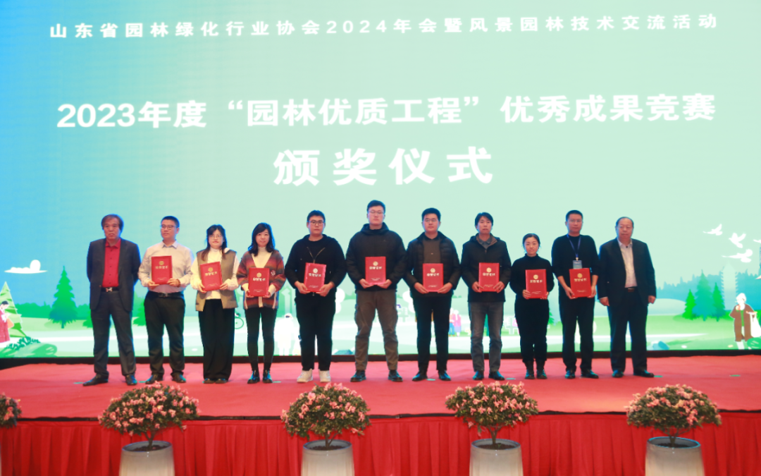 閉幕式上,分別進行了2023年度“園林優(yōu)質工程”優(yōu)秀成果競賽、第五屆園林綠化創(chuàng)新規(guī)劃設計優(yōu)秀成果競賽、2024年度“同圓杯”暨第八屆山東省大學生風景園林優(yōu)秀設計(論文)大賽等活動頒獎儀式。